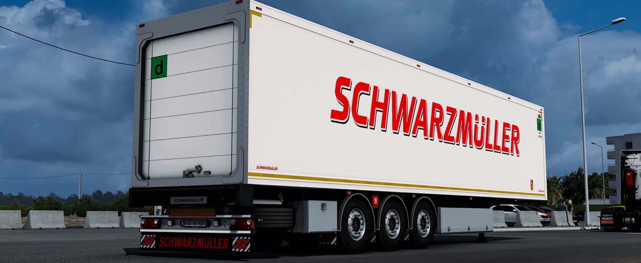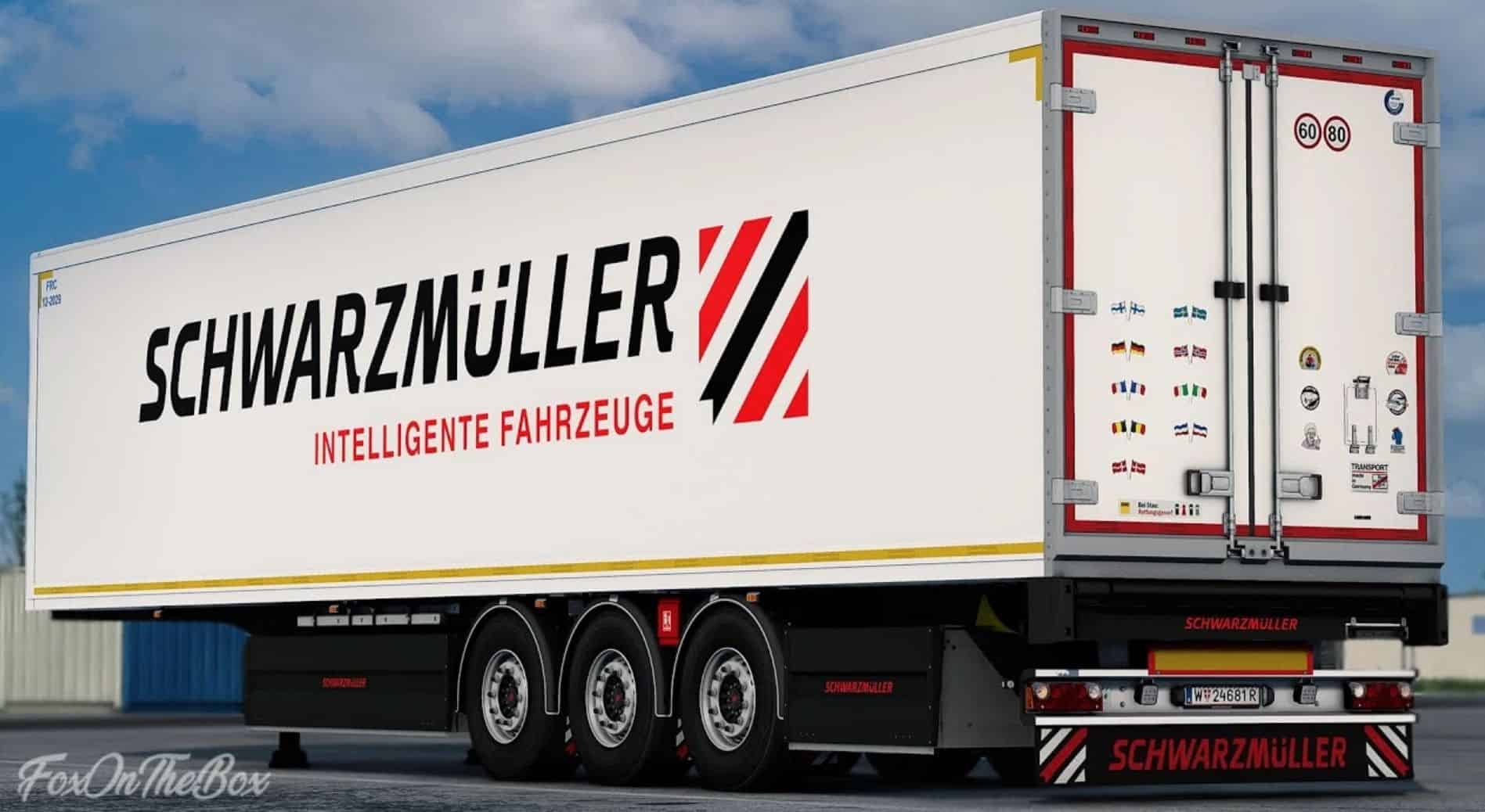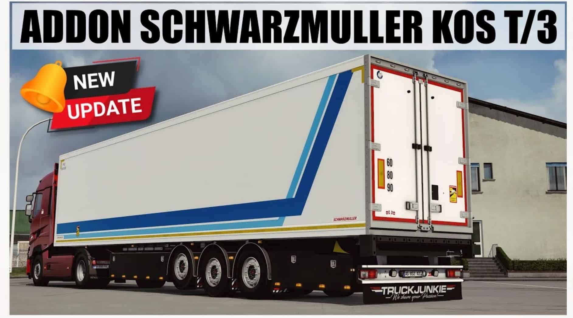 This Add-On adds a new standalone Schwarzmuller KOS T3/E 3-axle refrigerated box-body semitrailer to Euro Truck Simulator 2.