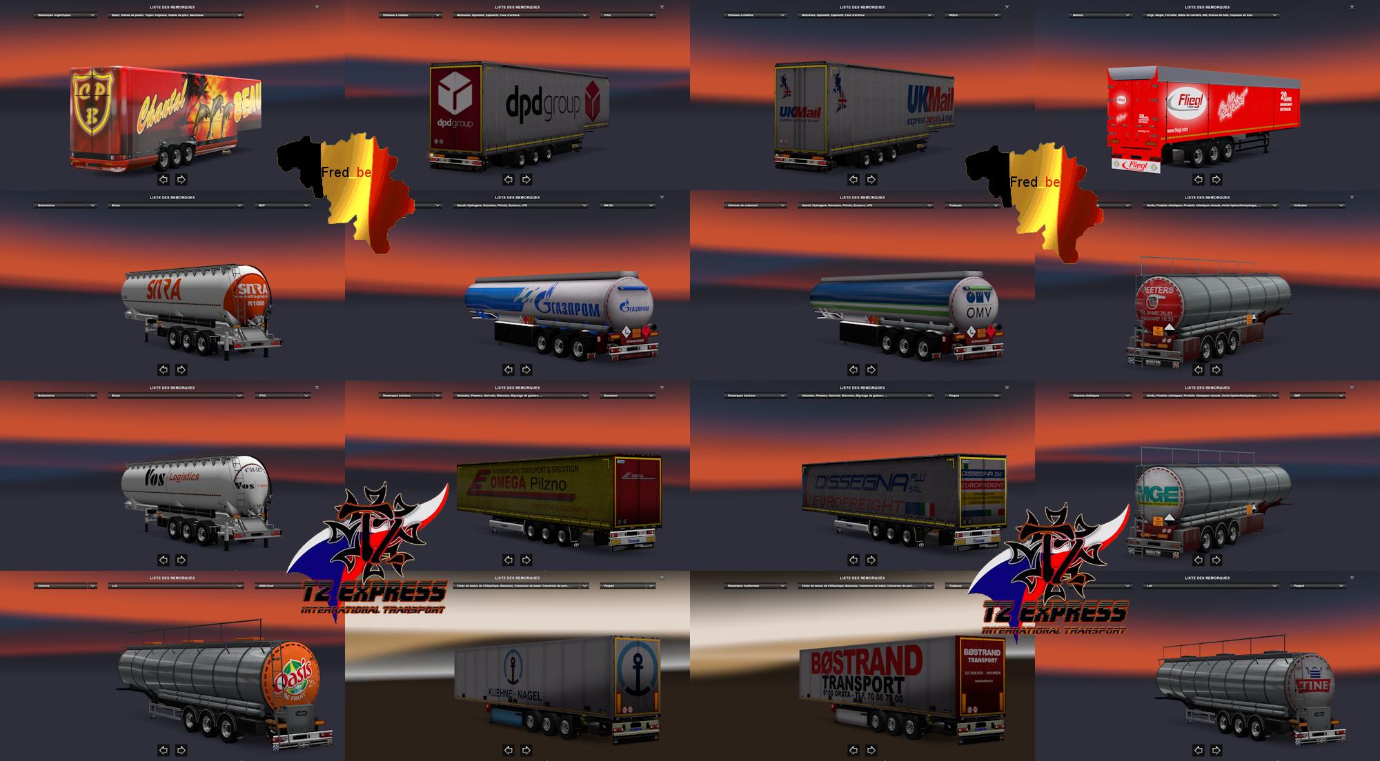 TRAILER PACK REPLACES V1.26 1.26.XS TRAILERS MOD ETS2 Mods | 28 Nov, 2016 TRAILER PACK REPLACES V1.26 1.26.XS TRAILERS MOD Trailer Pack Replaces V1.26 – Tested version 1.26.Xs – Replaces – AI Traffic – 237 Skins ( Aero_Dynamic, Trailer Jumbo, Cistern, Chemical Cistern, Container, Food cistern, Fuel cistern, Coolliner, S.K.O, Profiliner, Reefer, Universal, S_ki_solid ) Credits: TZ_Express, Fred_be This content was uploaded by website visitors. If you notice any mistake, please let us know. Download Tags: Chemical Cistern You may also like... SIDER RANDON LS v1.0 Trailers 7 Dec, 2024 KRONE MEGALINER SKIN PACK V1.8 BY THENUVOLARI ETS2 Trailers 13 Sep, 2019 TRAILER KLEMEN TRANSPORT 1.28.X ETS2 Trailers 15 Oct, 2017 Leave a Reply Cancel reply Your email address will not be published. Required fields are marked *Comment Name * Email * I have read and accepted the Privacy Policy * CategoriesETS2 Bus ETS2 Cars ETS2 Interiors ETS2 Map Objects ETS2 Maps ETS2 Other ETS2 Packs ETS2 Parts / Tuning ETS2 Sounds ETS2 Traffic ETS2 Trailer Skins ETS2 Trailers ETS2 Truck Skins ETS2 Trucks ETS2 Vehicles ETS2 Weather