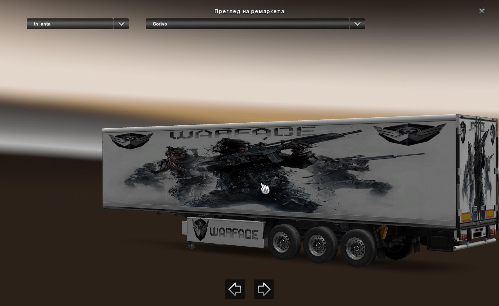 WARFACE TRAILER MOD ETS2 Mods | 29 Jan, 2017 WARFACE TRAILER MOD This mod add trailer ( Warface Trailer) in game, work with all version. Credits: .SCS.Predator544 This content was uploaded by website visitors. If you notice any mistake, please let us know. Download Tags: Warface Trailer You may also like... RBR CEGONHA TRES EIXOS v1.0 Trailers 12 Aug, 2025 TRAILERS PACK PACK REBOQUES BRASILEIROS V1.4.2 ETS2 Trailers 20 Nov, 2018 SCS SCHWARZMULLER REWORKED V1.1 1.32.X ETS2 Trailers 24 Sep, 2018 Leave a Reply Cancel reply Your email address will not be published. Required fields are marked *Comment Name * Email * I have read and accepted the Privacy Policy * CategoriesETS2 Bus ETS2 Cars ETS2 Interiors ETS2 Map Objects ETS2 Maps ETS2 Other ETS2 Packs ETS2 Parts / Tuning ETS2 Sounds ETS2 Traffic ETS2 Trailer Skins ETS2 Trailers ETS2 Truck Skins ETS2 Trucks ETS2 Vehicles ETS2 Weather