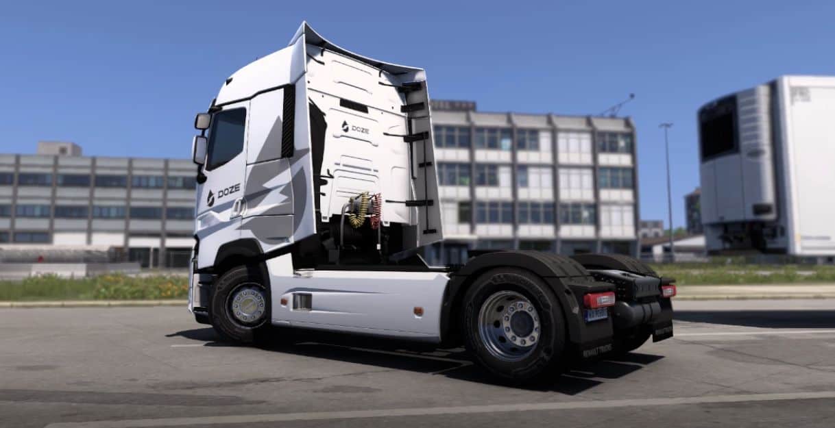 Present You Doze Renault T skin. This mod is compatibile with Renault Range T and Range T evolution in high- and normal roof configuration, fits 4×2, 6×2, 6×2/4, etc. chassis.