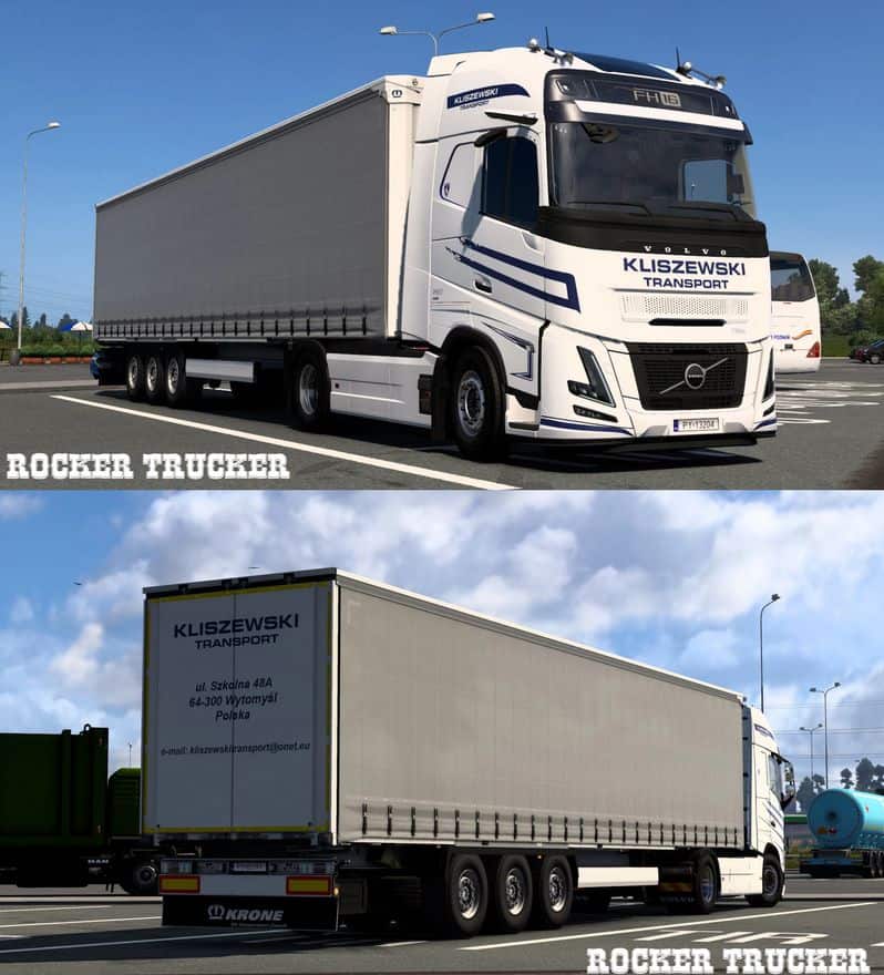 Kliszewski Transport Skin Pack v1.0 ETS2 Mods | 29 Dec, 2024 Kliszewski Transport Skin Pack v1.0 Skins for: – Volvo FH 4 REWORK (SCS) – Volvo FH 5 (SCS) – Volvo FH 6 (SCS) – Krone Profiliner Credits: Rocker Trucker This content was uploaded by website visitors. If you notice any mistake, please let us know. Download Tags: Krone Profiliner You may also like... SCANIA RJL – SHANGHAI LOGISTICS PAINTJOB BY L1ZZY TRUCK SKIN Truck Skins 9 Mar, 2018 Trayscapes Mack R Series Truck Skins Truck Skins 14 Aug, 2018 Samat Skin for Renault Premium Truck Skin Truck Skins 7 Feb, 2017 Leave a Reply Cancel reply Your email address will not be published. Required fields are marked *Comment Name * Email * I have read and accepted the Privacy Policy * CategoriesETS2 Bus ETS2 Cars ETS2 Interiors ETS2 Map Objects ETS2 Maps ETS2 Other ETS2 Packs ETS2 Parts / Tuning ETS2 Sounds ETS2 Traffic ETS2 Trailer Skins ETS2 Trailers ETS2 Truck Skins ETS2 Trucks ETS2 Vehicles ETS2 Weather
