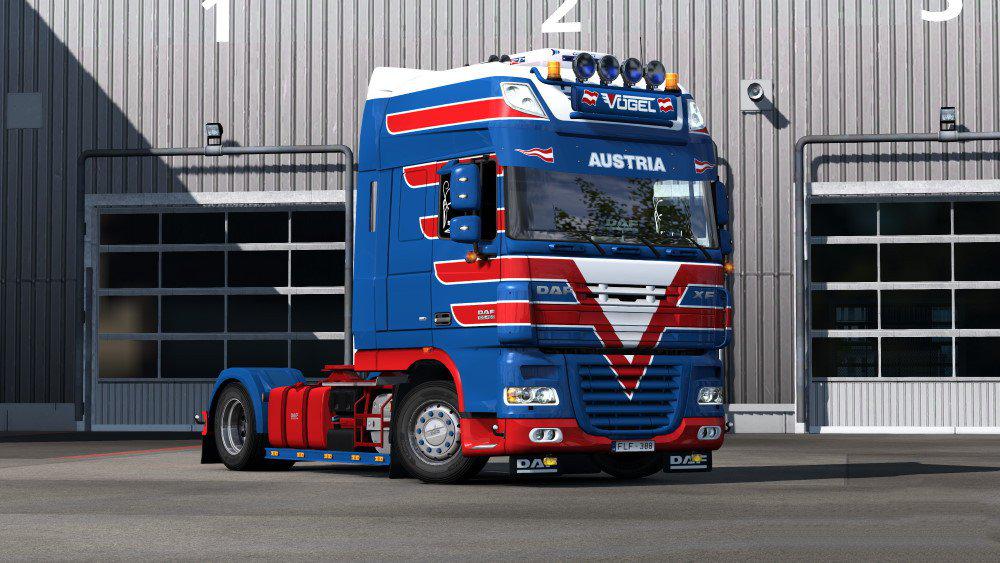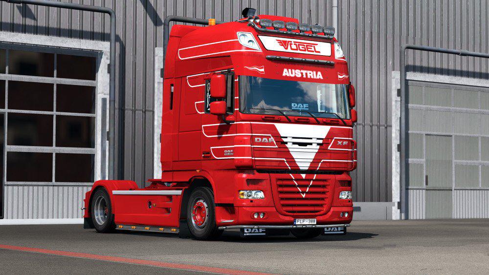 This is a small skinpack featuring two (blue & red) Vögel skins for DAF XF105.