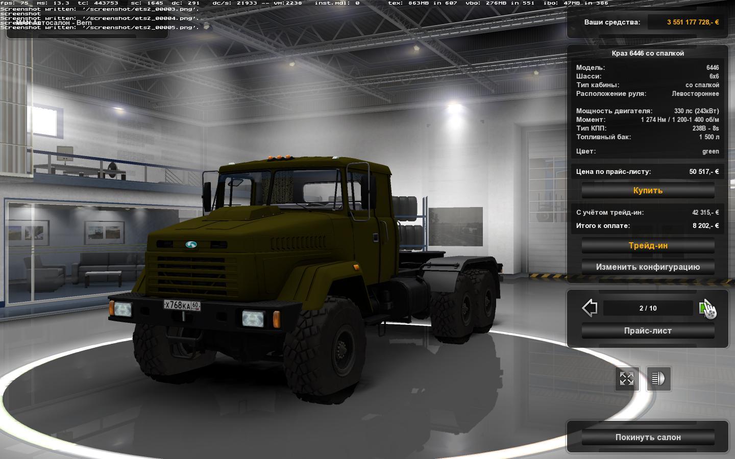 KRAZ 6446 64431 (1.27) TRUCK ETS2 Mods | 3 Apr, 2017 KRAZ 6446 64431 (1.27) TRUCK 3 cab (4 at 6446) 1 chassis 3 engines 5 transmissons Own wheels Interior Painted A lot of tuning Changes in the update: Adaptation under 1.27, updated all 3D models for a new patch, fixed small bugs in the log! The log is clean! Version 1.27 Credits: Authors: Nikon Oleynichenko, Anton Aronson, il_86, The Pain, adaptation under 1.27 - Phantom94, vovangt4 This content was uploaded by website visitors. If you notice any mistake, please let us know. Download You may also like... DAF XF 95 FIX V1.0 1.34 TRUCK Trucks 20 Apr, 2019 KAMAZ 5460 1.35 TRUCK Trucks 4 Jul, 2019 SCANIA T MOD V2.0 FOR 1.24 MOD Trucks 22 Oct, 2016 Leave a Reply Cancel reply Your email address will not be published. Required fields are marked *Comment Name * Email * I have read and accepted the Privacy Policy * CategoriesETS2 Bus ETS2 Cars ETS2 Interiors ETS2 Map Objects ETS2 Maps ETS2 Other ETS2 Packs ETS2 Parts / Tuning ETS2 Sounds ETS2 Traffic ETS2 Trailer Skins ETS2 Trailers ETS2 Truck Skins ETS2 Trucks ETS2 Vehicles ETS2 Weather