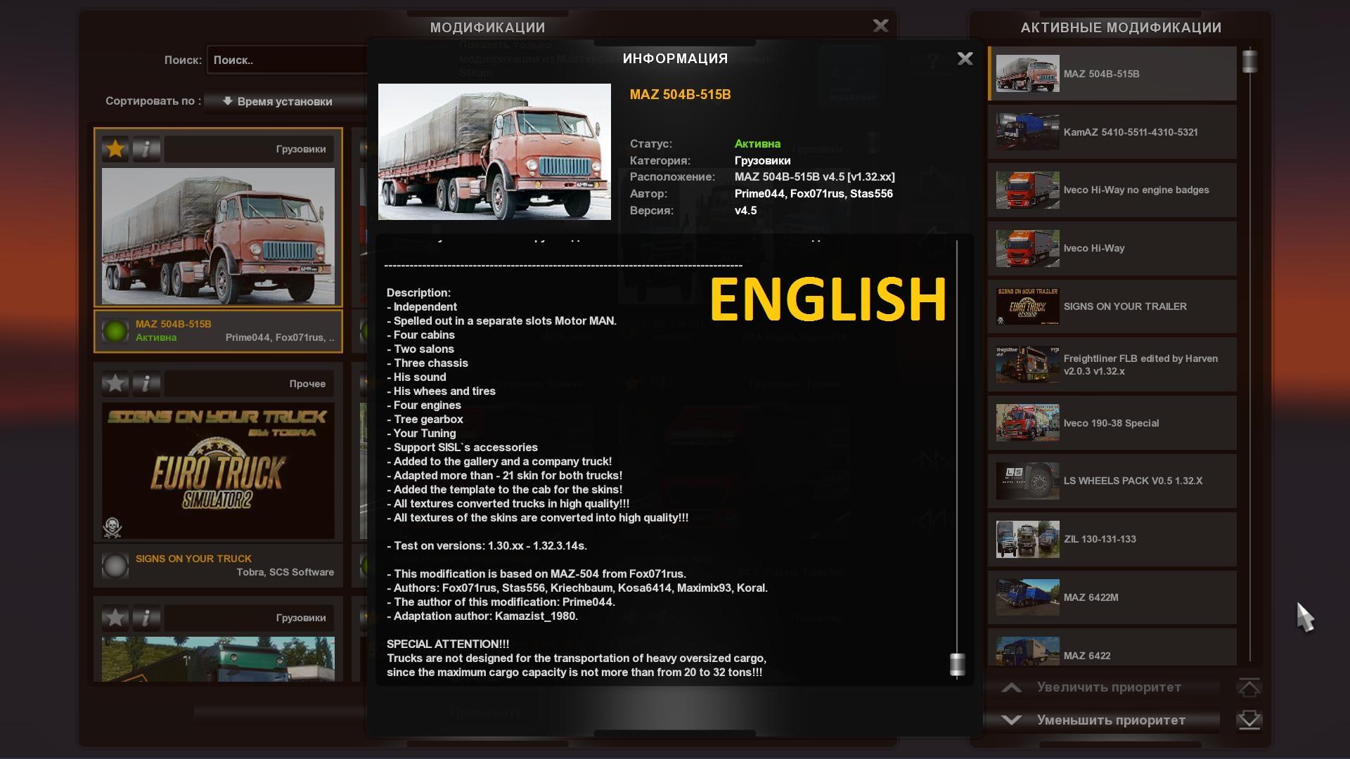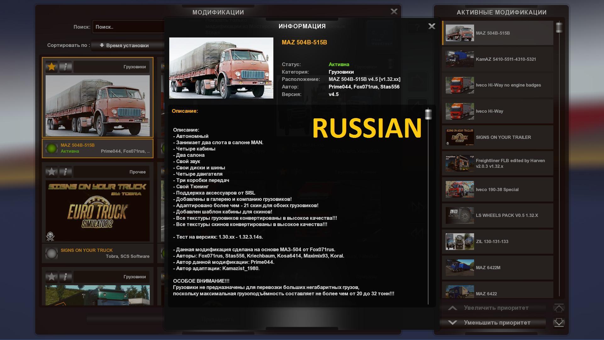 MAZ 504B-515B V4.5 TEMPLATE 1.32.X TRUCK MOD