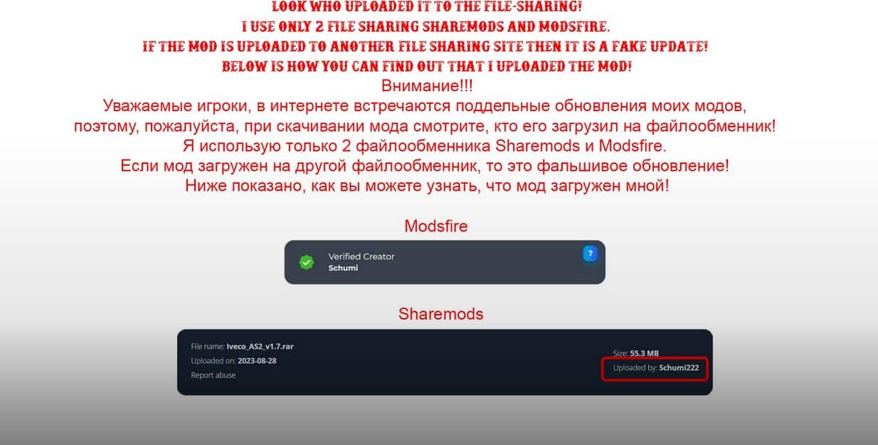 – With permission of the author made adaptation mod under Signs on your Truck