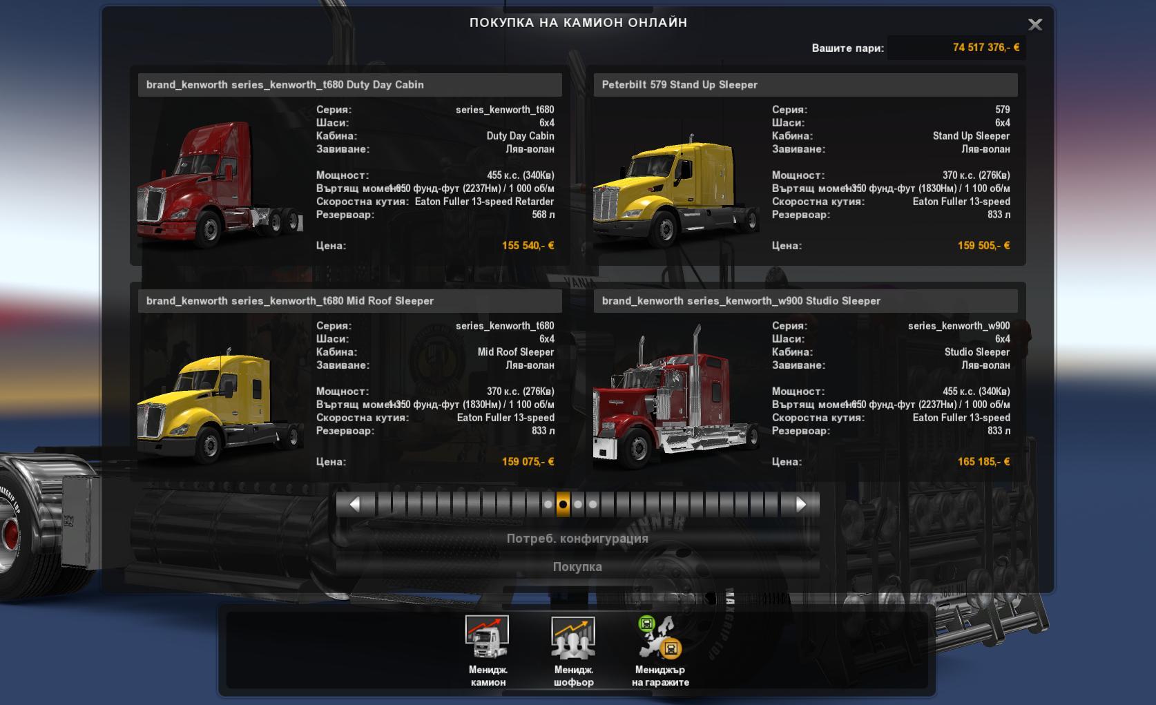 Fixed bugs, added a lot of skins for all trucks. A new truck Kenworth t660.