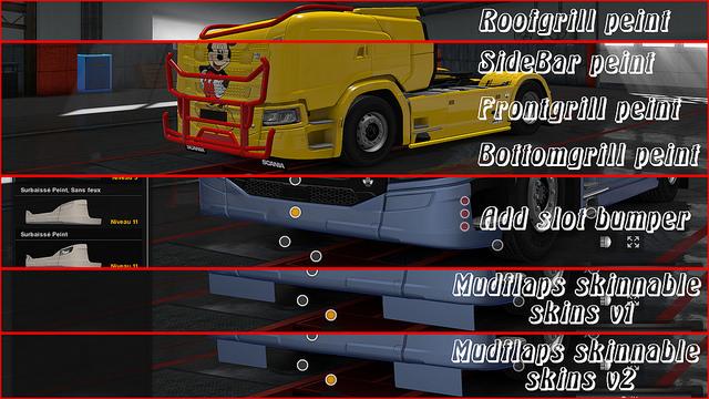– New skinnable front mudflaps on the skin of the truck